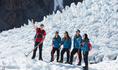 Join us for unforgetable adventure on the most incredible glacier experience. Check in at our base to get all the equipment you need for a glacier hike. Board your helicopter to the ice and witness 360 degree views of the Franz Josef Glacier valley, the Southern Alps and Tasman Sea. Strap on your crampons and embark on you glacier hike with your experienced glacier guide. See awe-inspiring glacial ice formations and follow hand cut stairs as you meander your way around the Franz Josef Glacier for two hours. Catch your helicopter back to base and reflect on a memory that will last a lifetime!